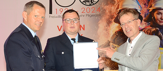 Seit 100 Jahren stellen freiwillige Feuerwehrleute den Brandschutz in Pilgerzell (Gemeinde Künzell, Landkreis Fulda) sicher. Regierungsvizepräsident Dr. Alexander Wachter überreichte der Feuerwehr zu diesem Jubiläum im Namen von Innenminister Professor Dr. Roman Poseck die Ehrenplakette des Landes Hessen.