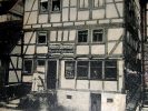 Erwähnenswert dürfte noch sein, dass meine Eltern neben dem Betrieb der Gasstätte einen blühenden Versand von 'Schlitzer Wurstwaren' und im Dezember von Weihnachtsgänsen betrieben. Die Auslieferung erfolgte damals mit der Pferdekutsche, im Winter mit dem Schlitten bis ins Hünfelder Land. Als wegen der Anschaffung eines Kombifahrzeuges, die Pferde nicht mehr gebraucht worden waren, wurden die Stallungen an das Hessische Landesgestüt in Darmstadt vermietet, manche Landwirte werden sich noch erinnern können, dass hier zwei Deckhengste stationiert waren. Die damalige Aufwärtsentwicklung bedurfte auch zahlreicher Baumaßnahmen: Erweiterung von Laden, Küche, kleiner Speisesaal und 4 Fremdenzimmer. Neubau des Schlachthauses mit Wurstküche und Reife sowie Räucherkammern. Hinzu kamen noch der große Saal mit Bühne, die Kegelbahn und die Gartenwirtschaft. Als das 50jährige Bestehen 1964 gefeiert werden konnte, konnte auch der Erweiterungsbau eingeweiht werden“.