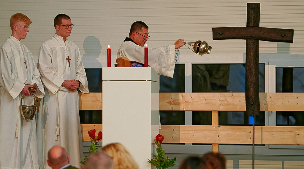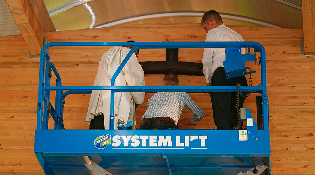 Für die Segnung und Einweihung des Neubaus war Diakon Kim Jung Nam Sell zuständig. Mit einer Scherenhubbühne wurde das geweihte und fast zwei Meter große Kreuz aus Eiche Altholz in der Hallenmitte in luftiger Höhe durch den Diakon zusammen mit dem Produktionsleiter und Geschäftsführer angebracht. Zu den 130 Gästen zählten die Mitarbeiterinnen und Mitarbeiter des Unternehmens mit ihren Partnerinnen und Partnern und alle am Bau beteiligten Firmen, bei denen sich Michael Paltian für die tadellose Zusammenarbeit ganz herzlich bedankte. Des Weiteren wurden im feierlichen Rahmen insgesamt 19 Mitarbeiterinnen und Mitarbeiter für ihre langjährige Betriebszugehörigkeit geehrt. Zusammen kommen sie auf stolze 365 Jahre und darauf sind Werner und Michael Paltian ganz besonders stolz. +++ pm/ja