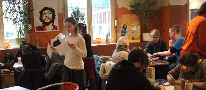 Alle können mitmachen und Bilder einreichen. Die einzige Vorgabe ist das Format, nämlich A5. In verschiedenen Cafés in der Fuldaer Innenstadt finden außerdem regelmäßig Maltreffen statt. Am kommenden Donnerstag (26.6.) ab 18 Uhr treffen sich die Kreativen in der Pizzeria „Tomate“. Wer lieber zu Hause malt, kann sein Bild per Post spenden oder in eine der vier Abgabeboxen in verschiedenen Fuldaer Innenstadt-Cafés einwerfen. „Wir sind wirklich sehr gespannt auf die Mischung, die da entsteht. Am Ende werden in der Ausstellung Künstlerbilder neben Kinderzeichnungen hängen. Es wird ganz sicher einzigartig“ ist Initiatorin Anja Brunsmann überzeugt.