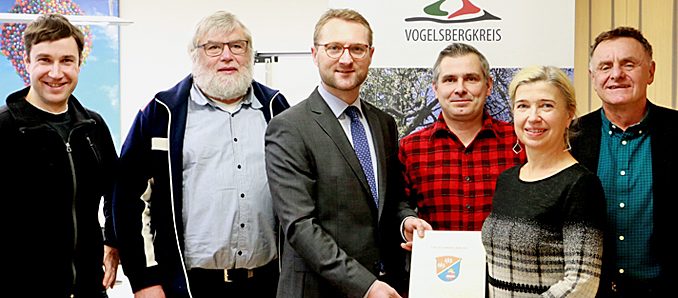 „Diese Sache“, das ist eine neue öffentliche Toilettenanlage, die für eine deutliche Verbesserung der Infrastruktur sorgen wird. Andreas Däsch, Inhaber der „Berghütte Hoherodskopfklause“, bestätigt, dass die Besucherzahlen auf dem Hoherodskopf steigen – und nicht nur das: „Dieses Jahr war es apokalyptisch, schon bei der Parkplatzsuche und vor allem in den Ferien“, sagt er. Auf seinem Grundstück sollen demnächst barrierefreie öffentliche Toiletten entstehen, er hat der Stadt die Fläche dafür zur Verfügung gestellt, bauen wird die Stadt Schotten. „Eine Win-Win-Situation für alle Beteiligten“, stellt Mischak fest, als er den Zuwendungsbescheid an Schottens Bürgermeisterin Susanne Schaab überreicht.