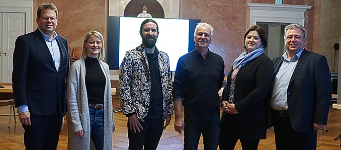 Das Team hinter der Landesgartenschau, die im kommenden Jahr vom 27. April bis zum 8. Oktober in Fulda gastiert, die beiden Geschäftsführer der eigens hierfür am 1. Oktober 2019 gegründeten „Landesgartenschau Fulda 2.023 gGmbH“, Marcus Schlag und Ulrich Schmitt, sowie Lisa Banetzke und Linea Tempel (letztere beide für die Veranstaltung verantwortlich) und nicht zuletzt Fuldas Oberbürgermeister Dr. Heiko Wingenfeld haben am Dienstagabend in einer gemeinsamen Pressekonferenz unter der Überschrift „Veranstaltungen und Hallenschauen auf der Landesgartenschau“ im Marmorsaal des Fuldaer Stadtschlosses einen Überblick über die gestalteten Themen-Präsentationen in den jeweiligen Hallenschauen, die dann ab dem 27. April 2023 im Rahmen der Landesgartenschau zu besuchen sein werden, gegeben. Als besonderen Gastreferenten konnte der Deutsche Meister der Floristen, Christopher Ernst, der für die Landesgartenschau Fulda als „Hallenschau-Planer“ gewonnen werden konnte aus dem benachbarten Thüringen in Fulda begrüßt werden.