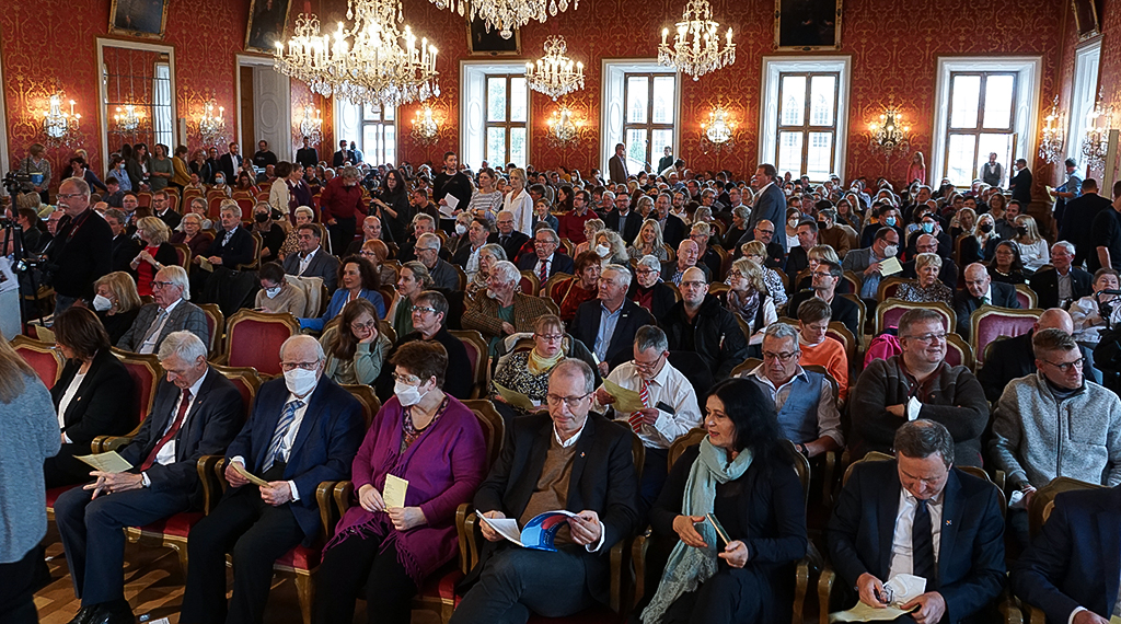 Über 400 geladene Gäste aus der Politik, Wirtschaft, Kirche und Gesellschaft sowie dem öffentlichen Leben waren am Donnerstag zu einem Empfang anlässlich 120 Jahre Bürgerstiftung antonius : gemeinsam Mensch im Fürstensaal des Fuldaer Stadtschlosses zusammengekommen. Die Bürgerstiftung, die früher den Namen „St. Antonius gGmbH“ trug und seit 2021 unter ihrem neuen Namen wirkt, bildet als Trägerstiftung das Dach des aus verschiedenen Gesellschaften, Betrieben und Kooperationen bestehenden Netzwerks. 1902 von der Fuldaer Bürgerin Maria Rang als „St. Lioba-Stiftung“ gegründet, verwaltet die heutige Bürgerstiftung antonius : gemeinsam Mensch die finanziellen Mittel und achtet darauf, dass der Stiftungsauftrag erfüllt wird. Vier Schwestergesellschaften - „Gemeinsam wachsen gGmbH“, „Gemeinsam begegnen gGmbH“, „Gemeinsam leben gGmbH“ und die „Perspektiva gGmbH“ – tragen als gemeinnützige GmbHs gemeinsam mit der Bürgerstiftung zur Verwirklichung des Stiftungsauftrags bei.