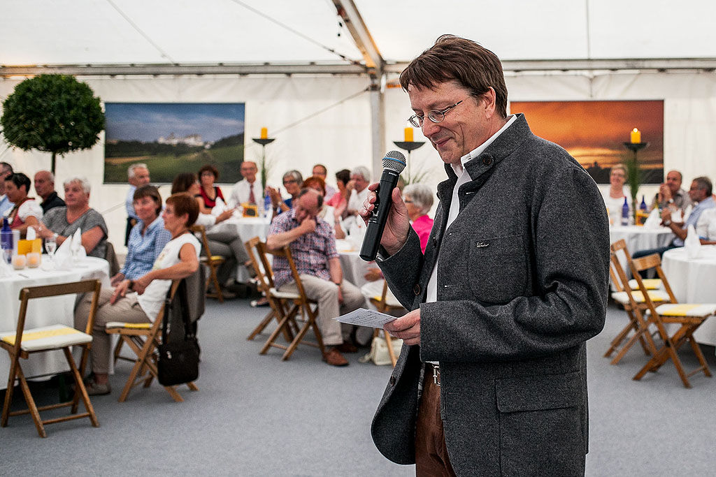 Wenngleich lediglich das zweite Kapitel der Chronik unter der Überschrift “Wachstum in unruhigen Zeiten” aufgebaut ist, erschließt sich dem Leser diese Titelzeile gleichermaßen als roter Faden durch die 125 Jahre. Denn immer wieder, so wird es auch in den nachfolgenden Kapiteln deutlich, musste sich das Unternehmen permanent auf die Anforderungen des Marktes ausrichten, auf Anforderungen aus dem Umweltschutz eingehen und Ressourceneffizienz sicherstellen. Dies ging auch aus der Ansprache von Dr. Christian W. Müller hervor, der besonders auf das große unternehmerische Geschick seines Vaters hinwies. In den Fokus seiner Rede stellte er das Motto der Jubiläumsveranstaltung „forever young“ und zeigte damit auf, dass sich die Zement- und Kalkwerke ihren jugendlichen Spirit bewahrt haben – insbesondere durch das große Engagement ihrer Mitarbeiter, eine gelebte Innovations- und Kundenorientierung sowie die Bereitschaft der Unternehmensleitung, kontinuierlich in effiziente Produktions- und Umwelttechnologien zu investieren. Besonders hob der 31-Jährige hervor, dass bei dem Familienunternehmen Otterbein im Gegensatz zu anonymen Publikumsgesellschaften „in Dynastien und nicht in Quartalsergebnissen gedacht wird“. Als größten Verdienst seines Vaters sah es Dr. Müller an, Otterbein als Familienunternehmen erhalten und sich erfolgreich in einem Markt behauptet zu haben, der geprägt ist von globalen Großkonzernen, einem erheblichen Preis- und Kostendruck und daraus resultierenden Konsolidierungstendenzen. Als Gratulanten beschrieben in teils launigen und auch tiefsinnigen Ansprachen sowie mit Gesang die Mitglieder des Sportvereins Germania Müs, die Musikfreunde Müs sowie der Bläserchor der Jäger- und Gebrauchshundevereinigung Rhön – Vogelsberg die Verbindung zum Unternehmer. Glückwünsche überbrachten auch der Vorsitzende des Bundesverbands der Deutschen Kalkindustrie, Dr. Thomas Stumpf sowie Prof. Dr. Albrecht Wolter von der TU Clausthal als Vertreter des Unternehmensbeirats. +++ fuldainfo | Fotos: christian reinhardt
