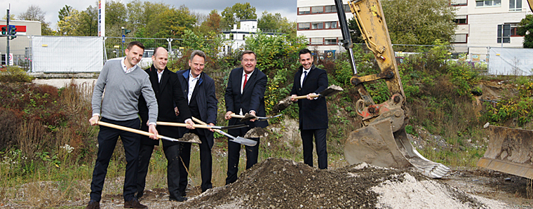 Hanau. Der gemeinsame Spatenstich macht es offiziell: die Bauarbeiten, die aus einer langjährigen Brache in der Hanauer Vorstadt einen attraktiven Wohnstandort werden lassen, beginnen noch in diesen Tagen. Wie der Geschäftsführer der FBW Projektbau GmbH als ausführendes Unternehmen bei dieser Gelegenheit erläuterte, soll es jetzt zügig losgehen. Die Arbeiten zur Wasserhaltung in der kommenden Woche machen demnach den Anfang. Anschließend, so Pietro-Fabrizio Floresta zu Oberbürgermeister Claus Kaminsky, wird die Baustelle mit Spundwänden versehen und so die Voraussetzungen geschaffen, dass die Fundamentierarbeiten starten können. Und noch bevor die erste Betonsohle gegossen ist, haben alle hier entstehenden Wohnungen schon einen Besitzer gefunden. Die GBW Gruppe aus München hat die gesamte Liegenschaft erworben, um auf dem hessischen Wohnungsmarkt zu expandieren.