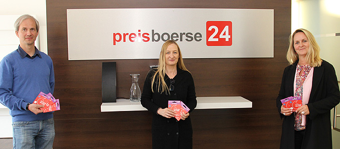 Bei der Kartenübergabe: Jugendhilfeverbunds-Bereichsleiter Seifert, Preisboerse24-Mitarbeiterin Gülay und Caritas-Ressortleiterin Saradj. (v.l.)