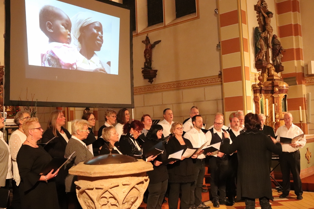 „Das Konzert in der vollbesetzten Kirche von Hofbieber mit ihrer großartigen Akustik, die wunderschönen Bilder aus Kenia, die einfühlsamen Texte von Claudia Wegener und die friedvolle Atmosphäre des Abends waren auch für die Sängerinnen und Sänger ein besonderer Genuss“, sagten die Chorleiterin von „Le Chör“, Juliane Jorden, und ihr Kollege Franz van Eyk, als sie an die „LebKom“-Vertreterinnen Ulrike Maschke und Claudia Wegener einen Scheck in Höhe von 1525 Euro übergaben.