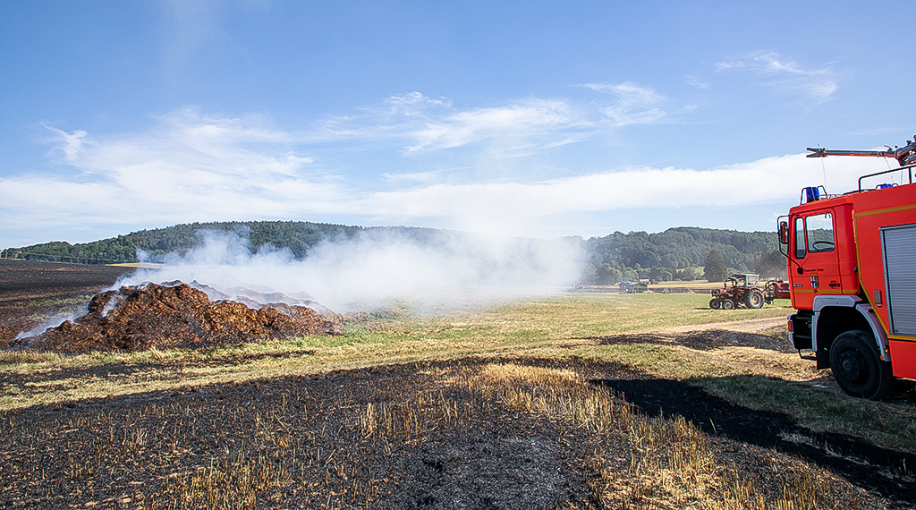 Der Brand einer größeren Ackerfläche wurde am Montagnachmittag bei Burghaun-Rothenkirchen gemeldet. Mehrere Feuerwehren waren im Einsatz. Die Rauchwolke war schon aus einigen Kilometern Entfernung zu sehen. Das Feuer lief über mehrere abgeerntete Kornfelder, laut Landwirt handelte es sich um 20 Hektar. Insgesamt waren die Feuerwehren mit 90 Einsatzkräften vor Ort und rückten aus Burghaun, Hünfeld, Hofbieber, Tann, Vacha und Fulda an. Sie konnten verhindern, dass das Feuer in einen angrenzenden Nadelwald lief. Gegen 18 Uhr war das Feuer gelöscht, während der Löscharbeiten hatten die Einsatzkräfte noch mit dem Wind zu kämpfen und zwischenzeitlich Ausrüstungsgegenstände verloren. Es verbrannten vier Hektar Getreide, die restliche Fläche war ein Stoppelacker. +++