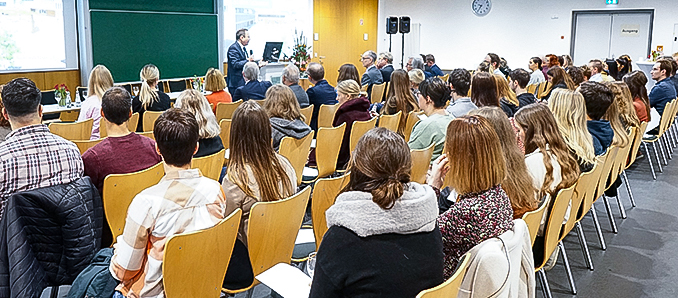Zwei Talkrunden, unter der Leitung von Professorin Dr. Anne Schäfer, M.A. und Professorin Dr. Anne Walter, lenkten den Blick auf die Praxis im Sozialrecht, insbesondere auf die vielfältigen Arbeitsgebiete (von der Behörde bis zur Unternehmensberatung), die guten Gehaltsaussichten und Entwicklungsperspektiven von Absolventinnen und Absolventen in der Region Fulda und bundesweit. Einige Absolventen haben auch akademische Laufbahnen eingeschlagen, über den Bachelor- und Masterabschluss und die Promotion bis zu einer Professur, die letztlich aus dem Studiengang Sozialrecht hervorgegangen sind.