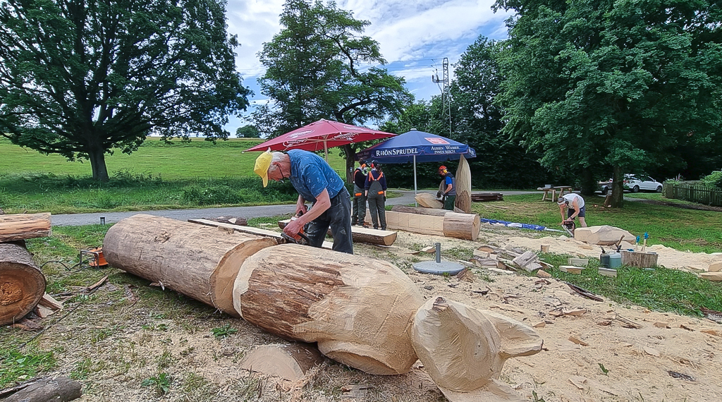 In einem Zweijahres-Rhythmus haben wir in diesem Jahr die Initiative der Holzbildhauertage fortgesetzt und im 20. Jahr zum 12. Mal ausgerichtet. Mit dem renommierten Bildhauer Dr. Ulrich Barnickel aus Schlitz sowie Elmar Baumgarten und dessen Sohn Johannes aus Ebersburg-Ritzelshof konnten wir wieder bekannte Künstler aus der Region gewinnen, die noch durch vier weiteren erfolgreichen Bildhauern aus dem Umfeld und der Schweiz ergänzt wurden. Das Stammholz wurde wie seither auch wieder von Hessen Forst, dem Forstamt Hofbieber, zur Verfügung gestellt.