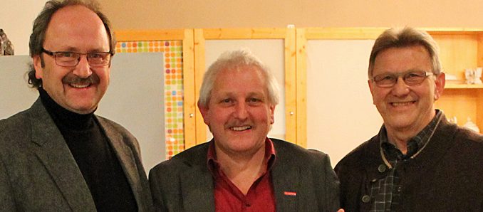 Martin Schäfer (Obermeister der Innung für Sanitär-, Heizungs- und Klimatechnik Fulda-Hünfeld), Jubilar Volker Zentgraf und Kreishandwerksmeister Claus Gerhardt (v.l.)