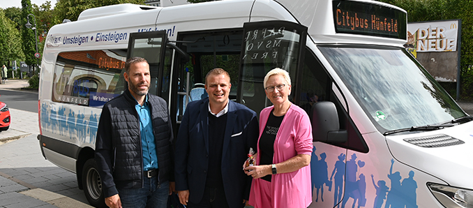 Zum 25jährigen Bestehen des Citybus Hünfeld gab es eine Jubiläumsfahrt. Seit einem Vierteljahrhundert fährt der Bus in dritter Generation durch Hünfeld und ist für viele nicht mehr wegzudenken. Tägliche Wege wie Arztbesuche und Einkäufe zu erledigen und somit weiter am gesellschaftlichen Leben in unserer Stadt teilnehmen zu können, sind für jährlich ca. 25.000 Fahrgäste nur einige Gründe, das Angebot zu nutzen und mobil bleiben zu können. Mittlerweile sind durch die täglichen Fahrten auch Freundschaften entstanden, man kennt sich und nutzt den Citybus mitunter auch, um sich zu unterhalten und Neuigkeiten auszutauschen. Eine großartige Erfolgsgeschichte, so Bürgermeister Benjamin Tschesnok, der für die Fahrgäste an diesem Tag kleine Präsente dabei hatte. Gemeinsam mit Fachbereichsleiter Bastian Bayer nutzte Tschesnok die Gelegenheit, sich mit den Fahrgästen und Fahrern über die vergangenen Erlebnisse und Erfahrungen auszutauschen. +++ pm