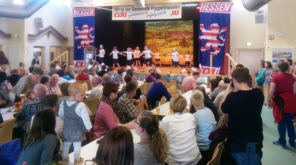 Am Nachmittag unterhielten die Kindertanzgruppen der VHS unter Leitung von Christina Fleck und des TSV Poppenhausen unter der Leitung von Christine Stüß und Julia Trapp die Gäste im voll besetzten Von-Steinrück-Haus. Einige Mitglieder wurden in einem kleinen Festakt für ihre langjährige und treue Mitgliedschaft bei den Poppenhausener Christdemokraten geehrt. „Das ist für mich als Vorsitzende eine schöne Aufgabe, die ich sehr gerne vornehme“, betonte Elisabeth Laudenbach. Für 20 Jahre Mitgliedschaft wurden Edith Müller, Gottfried Wehner, Michael Sapper, Michael Groß und Frank Robbert und für 15 Jahre Mitgliedschaft Andreas Schubert geehrt. Sie erhielten eine Urkunde und ein kleines Geschenk. Bei zahlreichen Begegnungen und Gesprächen, guter Unterhaltung endete am Abend das Familienfest unter Freunden in geselliger Runde. +++ fuldainfo
