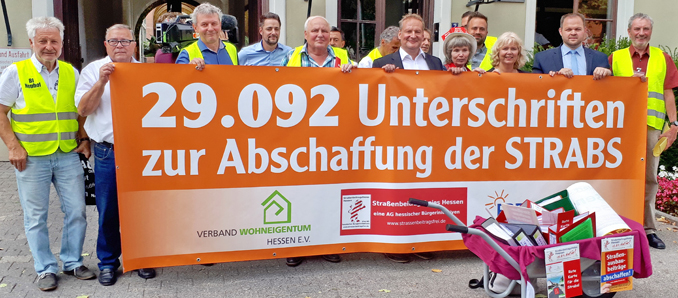 Die Bürgerinitiativen gegen Strassenbeiträge, zusammengeschlossen in der AG Strassenbeitragsfreies Hessen, haben gestern 30.000 Unterschriften gegen die in allen Hessischen Kommunen viel diskutierten Strassenbeiträge an den Landtagspräsidenten Boris Rhein übergeben. Gleichzeitig denken die Bürgerinitiativen darüber nach, mit einer Bürgerliste auf Ebene des Landkreises bei der Kommunalwahl 2021 anzutreten. Viele dieser 30.000 Unterschriften wurden auch im Landkreis Fulda von den Bürgerinitiativen Fulda, Petersberg, Eichenzell, Neuhof und Dipperz gesammelt. Im Jahr 2018 brachten die AG Strassenbeitragsfreies Hessen zusammen mit den Freien Wählern Hessen und dem Verband Wohneigentum die Petition zur Abschaffung der Straßenausbaubeiträge in Hessen auf den Weg.