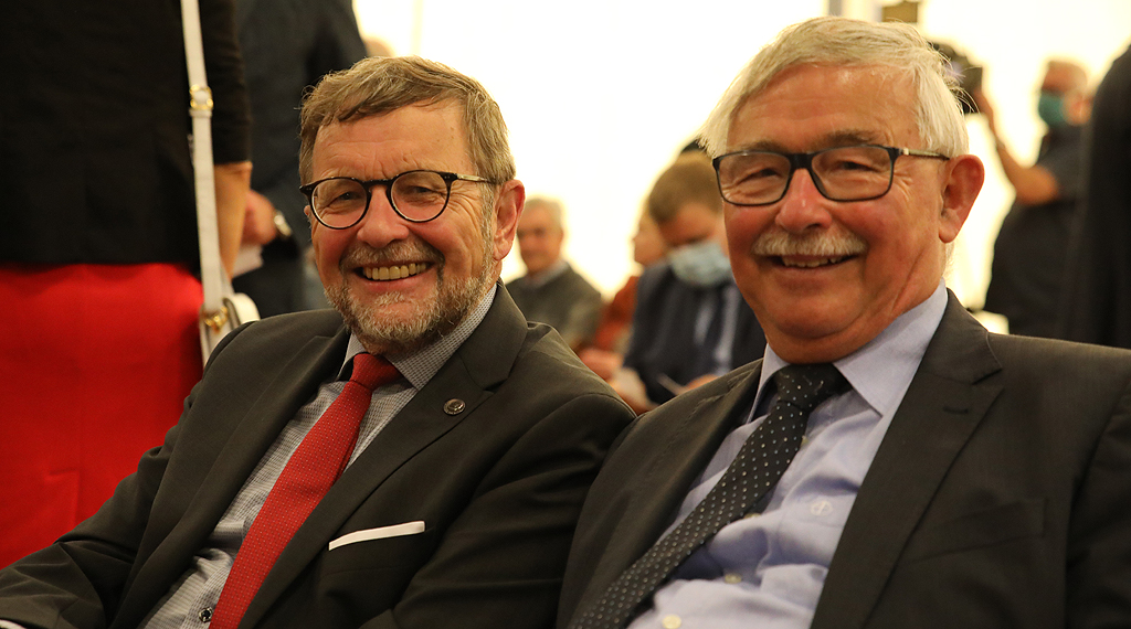 Der Stiftungsratsvorsitzende und Staatssekretär im Hessischen Ministerium des Innern und für Sport, Dr. Stefan Heck, begrüßte zum Festakt im ehemaligen US-Camp zahlreiche Ehrengäste aus der Bundes-, Landes- und Kommunalpolitik, Kirche und Gesellschaft – unter ihnen die Landräte des Wartburgkreises und des Landkreises Fulda, Reinhard Krebs und Bernd Woide, die Bürgermeisterin der Stadt Geisa, Manuela Henkel, der Bürgermeister der Gemeinde Rasdorf, Jürgen Hahn. Besonders freute sich der Stiftungsratsvorsitzende mit der Ministerialdirigentin für Kultur in der Thüringer Staatskanzlei, Elke Harjes-Ecker, eine Vertreterin der Landesregierung des Freistaates Thüringen begrüßen zu dürfen. Weitere Grußworte galten den haupt- und ehrenamtlichen Repräsentanten der Gebietskörperschaften, den Mitgliedern des Fördervereins von Point Alpha sowie aus dem Vorstand der Point Alpha Stiftung sowie allen Förderern, Freunden und Unterstützern. Besonders begrüßt wurden mit Dr. Eberhard Fennel, Bürgermeister der Stadt Hünfeld a.D., und Berthold Jost, Bürgermeister der Gemeinden Rasdorf und Eiterfeld a.D., zwei Persönlichkeiten, die sich in den vergangenen Jahren um Point Alpha besonders verdient gemacht haben. Beide wurden für ihre vielfältigen Verdienste im Land Hessen vor Kurzem mit der höchsten Auszeichnung des Landes, mit dem Hessischen Verdienstorden, ausgezeichnet.