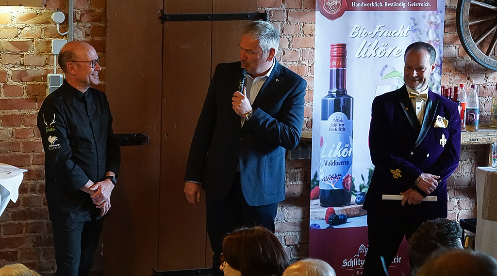 Rund 100 Gäste waren gestern Abend anlässlich der Auftaktveranstaltung des 30-jährigen Bestehens der Initiative „RhönerCharme“ in diesem Jahr im Landgasthof „Rhönblick“ in Künzell-Wissels (Landkreis Fulda) zusammengekommen. Unter den Anwesenden in der festlich dekorierten Festscheune des Familienbetriebes befanden sich mit dem Landrat des Landkreises Fulda, Bernd Woide (CDU), und dem heimischen CDU-Landtagsabgeordneten, Sebastian Müller MdL, neben Vertretern aus der Kommunal- und Landespolitik, mit Steffen Ackermann und Gerlinde Falkowski auch Repräsentanten des Deutschen Hotel- und Gastronomieverbandes DEHOGA Hessen und Fördervereins „Feuer & Flamme – zu Gunsten von Jugend und Kochkunst Fulda“ und damit starke Befürworter für das Gastgewerbe im Allgemeinen. Besonders begrüßt vonseiten des Vorstandes der „RhönerCharme“-Initiative, Andreas Rau („Fuldaer Haus“, Poppenhausen, Wasserkuppe) wurden Dominik Höhl vom Amt für Stadtmarketing und Wirtschaftsförderung (Fulda), Roland Frormann von der Region Fulda sowie Armin Gerbeth von der Ausbildungsberatung der IHK Fulda. Ein weiterer besonderer Willkommensgruß galt den anwesenden Mitgliedern „der ersten Stunde“, genannt „die Urigen“ sowie mit Wolfgang Wehner und dessen Sohn, Oliver Wehner (GROMA – Wehner Lebensmittel GmbH & Co. KG) neben dem „MineralBrunnen RhönSprudel“ und dem „Hochstiftlichen Brauhaus Fulda“ Vertreter eines der langjährigen Premiumpartnerunternehmen des RhönerCharme.