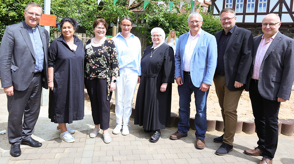 Vor wenigen Monaten übernahm Christa Riemer die Leitung des Kinderhauses von Jennifer Häfner, die sich aktuell im Erziehungsurlaub befindet. Sven Haustein, Geschäftsführer der St. Vinzenz Soziale Werke gGmbH Fulda, dankte in seiner Rede in der Stadtpfarrkirche Frau Riemer und ihrer Stellvertreterin Christina Pape, die seit über 35 Jahren in der Vinzenz-Gruppe Fulda beschäftigt ist und die Entwicklung der Kita maßgeblich mitgeprägt hat. Ein Jubiläum, so Sven Haustein, sei ein guter Anlass, um Danke zu sagen. Der Geschäftsführer der St. Vinzenz Soziale Werke gGmbH Fulda dankte den Schwestern vom Orden des heiligen Vinzenz von Paul, insbesondere der Generaloberin Sr. Birgit Bohn, sowie dem Stadtpfarrer Stefan Buß und seinem Team, den Verantwortlichen der Stadt Fulda, den Vertretern des Bischöflichen Generalvikariats und allen Mitarbeiterinnen und Mitarbeitern des Kinderhauses für ihr Engagement und die Organisation der heutigen begangenen Jubiläumsfeier.