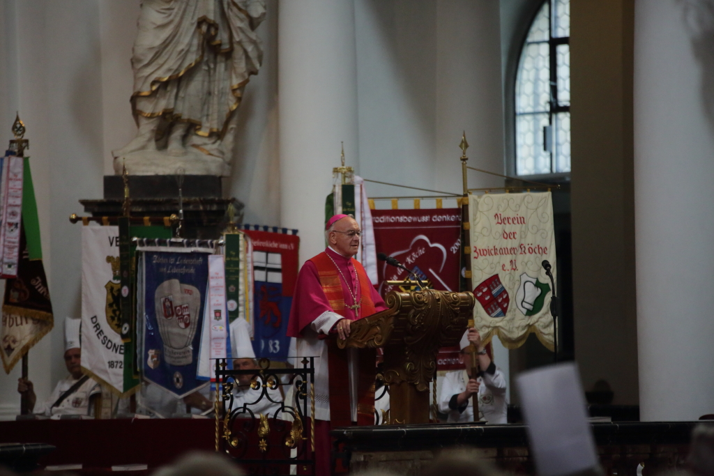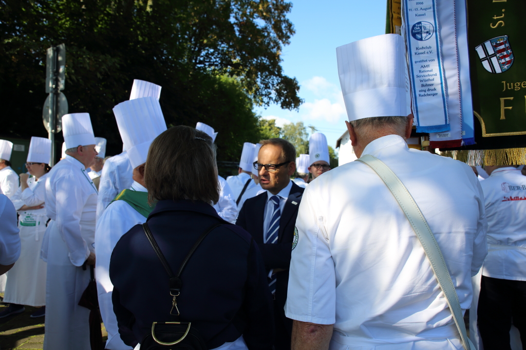 es freut mich außerordentlich, dass ich heute in ihrer wunderschönen zauberhaften Stadt das Wort ergreifen kann. Was nutzt einem Oberbürgermeister eine schöne, kulturelle, geschichtsträchtige -hochaktuelle Stadt, wenn sie die Menschen nicht mit Leben erfüllt? Und dazu muss ich sagen – und gerade ganz besonders und auch im Hinblick auf unserer Zeit, in der wir heute leben und um Hinblick auf unseren Beruf, den wir ausüben – tut es mir ganz besonders leid und das ist die Gastronomie. Und daher einen ganz besonderen Dank an Dich, mein lieber Freund Stefan für Deine Kolleginnen und Kollegen, Freunde und Sponsoren vom Verein der Köche Fulda. Ihr seid das Herz dieser Stadt, Ihr seid die Menschen, die sie glücklich machen können. Ein großes Dankeschön für diese hervorragende Ausrichtung des diesjährigen Laurentiustags, die Sie alle, liebe Kolleginnen und Kollegen heute zum zweiten Mal abgeliefert haben. Lobes- und Dankesworte möchte ich an dieser Stelle auch der Kirche aussprechen. Herrn Bischof Heinz Josef Algermissen und Herrn Monsignore Dr. Günter Etzel für die hervorragende Gestaltung der Ökumenischen Gottesdienstfeier sowie die hervorragenden Predigten. Ich würde mir für die Stadt Fulda wünschen, dass sie in Zukunft, noch von vielen, vielen Besucherinnen und Besuchern erreicht wird und diese Besucher sich dann genauso wohlfühlen, wie das die Köche beim diesjährigen Laurentiustag in Fulda getan haben und sich wahrscheinlich noch viele Jahre an den Laurentiustag 2016 zurückerinnern werden. Ein herzliches Dankeschön, dass ich bei Ihnen zu Gast sein durfte.“