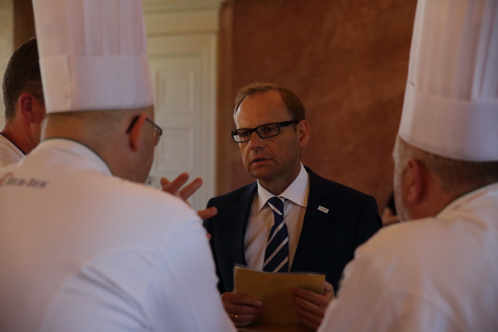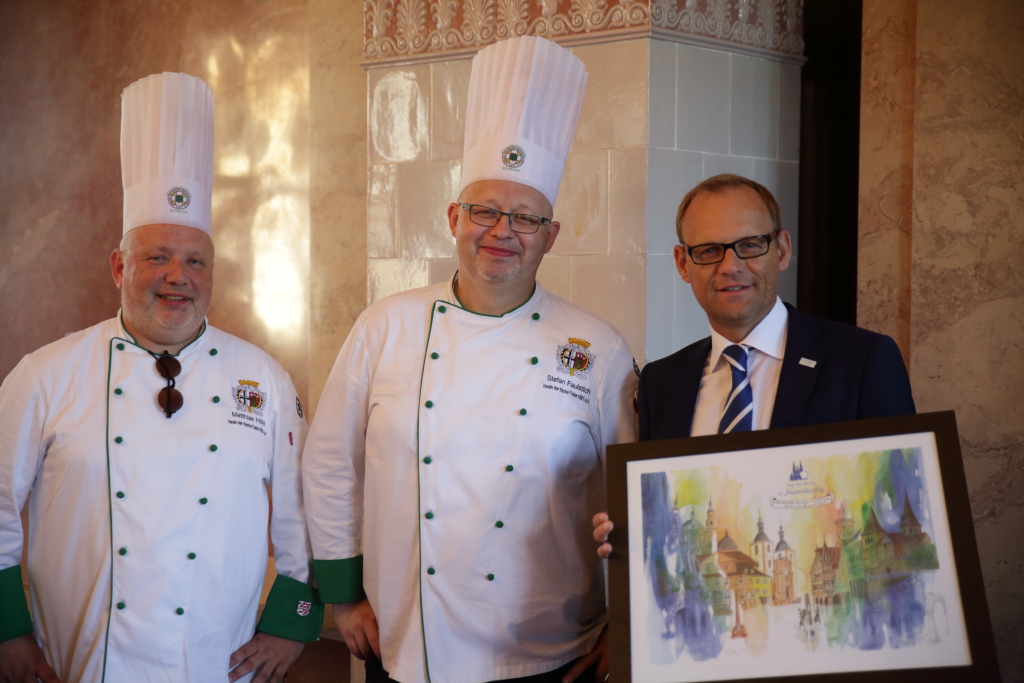 „Die Stadt Fulda freut sich außerordentlich, sie auch in diesem Jahr wieder – anlässlich ihres 31. Laurentiustages – aufs herzlichste begrüßen und willkommen heißen zu dürfen“, hieß Bürgermeister Dag Wehner die knapp 120 Köche, die der Einladung des Empfangs gefolgt waren, im Marmorsaal des Fuldaer Stadtschlosses willkommen. „Ihre Festveranstaltung – und das haben sie wahrscheinlich schon am Tag ihrer Anreise bemerken können – ist in Fulda – aufgrund seiner idealen Lage – sicherlich gut angesiedelt. So fungiert unsere Stadt – mitten in Deutschland und in der Mitte von Europa gelegen – mit guten Verkehrsanbindungen, als idealer Tagungs- und Messestandort und Veranstaltungsort. Kontinuierlich steigende Übernachtungs- und Tourismuszahlen bestätigen uns dies nicht nur, sondern belegen sicherlich diese positive Entwicklung auch nachhaltig“, verdeutlichte Wehner den Standort und damit korrelierend – die Bedeutung der Stadt Fulda als wichtiger Ausrichtungsort von Messen und Veranstaltung. Ebenfalls brachte Bürgermeister Wehner in seinem Grußwort, den Mangel an Nachwuchskräften im Gastgewerbe zur Sprache. In diesem Kontext – Dag Wehner den Nachwuchsmangel als wesentlichen Risikofaktor für die Wirtschaft in der Region Fulda deklarierte: „In der Praxis bedeutet das, dass die Suche nach jungen Nachwuchskräften für die Unternehmen – mittlerweile zu einem ganz wesentlichen Erfolgsfaktor wird; Und gerade im gastronomischen Bereich weiß ich, dass auch verschiedene Unternehmen bereits Niederlassungen schließen mussten, weil sie den Nachwuchs, den sie so händeringend suchen, hier nicht mehr bekommen können“, weiß Fuldas Bürgermeister um die Problematik in diesem Berufszweig.