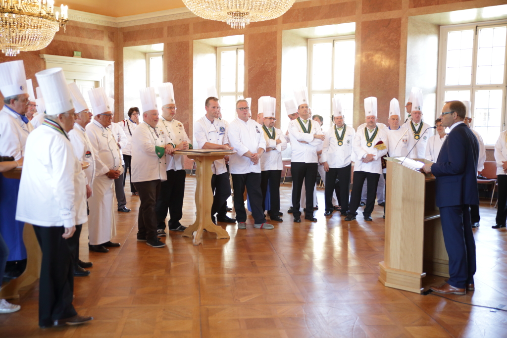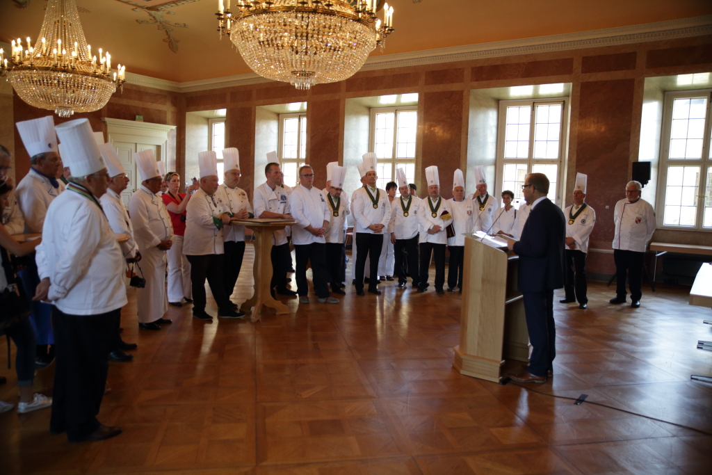 Am Samstagnachmittag fand im Marmorsaal des Fuldaer Stadtschlosses die offizielle Begrüßung der Köchinnen und Köche von Seiten des Magistrates der Stadt Fulda statt. Stellvertretend für den Fuldaer Oberbürgermeister Dr. Heiko Wingenfeld (CDU), der sich derzeit mit seiner Familie noch im Urlaub befindet, hieß Dag Wehner (CDU), Bürgermeister der Stadt Fulda, den Organisator und Veranstalter des 31. Laurentiustags, den Verein der Köche Fulda 1921 e. V. sowie den Verband der Köche Deutschlands e. V. anlässlich ihres bundesweiten nationalen Gedenktags im Marmorsaal des Fuldaer Stadtschlosses willkommen. Besondere Grußworte galten dem ersten Vorsitzenden des Vereins der Köche Fulda 1921 e. V. Stefan Faulstich, dem Präsidenten des Verbands der Köche Deutschlands e. V. Andreas Becker sowie dem Ehrenpräsidenten des Verbands der Köche Deutschlands e. V. und ehemaligem Präsidenten des Weltbundes der Köcheverbände (World Association of Chefs Societies) Dr. h.c. Siegfried Schaber. Daneben hieß das Fuldaer Stadtoberhaupt die Köchinnen und Köche, „unsere Freunde aus unserer niederländischen Partnerstadt Dokkum“ von Fuldas Partnerstadt Dokkum (Niederlande) sehr herzlich willkommen.