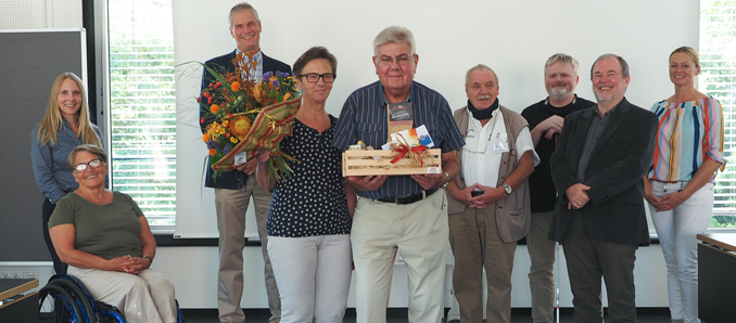 Aufgrund der Corona-Pandemie und deren Folgen sei es nicht möglich gewesen, die beiden zu einem früheren Zeitpunkt in einem angemessenen Rahmen zu verabschieden, so Peter Althaus. Äußerst bedauerlich sei zudem, dass Karl-Heinz Käbisch krankheitsbedingt nicht an der Veranstaltung teilnehmen könne. Im Namen der Ersten Kreisbeigeordneten und Sozialdezernentin Susanne Simmler dankte er Horst Möwes und Karl-Heinz Käbisch für ihr großes Engagement und die unermüdliche ehrenamtliche Arbeit in der wichtigen Expertengruppe: „Sie haben einen wichtigen Beitrag geleistet für die Verwirklichung der gleichberechtigten Teilhabe von Menschen mit Behinderung am gesellschaftlichen Leben. Dafür gebührt beiden große Anerkennung.“ Horst Möwes wurde im Jahr 2007 in das Gremium gewählt und war bis 2019 dessen stellvertretender Vorsitzender. Er wirkte an verschiedenen Projekten mit, etwa an der Neuauflage des digitalen Wegweisers für Menschen mit Behinderung. Während seiner zwölfjährigen Amtszeit betreute er gemeinsam mit dem ehemaligen Vorsitzenden Heinz Peters viele Bauprojekte Zudem war er zuständig für die Sozialberatung im Behindertenrat. Er engagiert sich derzeit als Sozialberater des Sozialverbandes des VDK in Schlüchtern. Zudem ist Horst Möwes ehrenamtlich als Behindertenbeauftragter der Stadt Schlüchtern tätig.