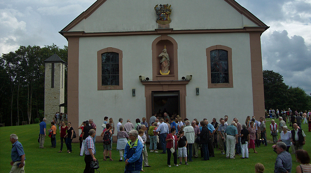 Worte des Dankes von Pfarrer Michael Krammer für das vorjährige Wallfahrtsgeschenk - der metallenen Bankhaken und deren Montage - an die Wallfahrtkirche sowie des Wallfahrtsleiter und Kolping-Bezirksvorsitzenden Werner Reck, Niederkalbach, an den Zelebranten und die Wallfahrtsteilnehmer beendeten den diesjährigen 35. Bezirkswallfahrtstag. Die 36. Bezirkswallfahrt findet am 2. August 2015 statt. Im Bezirksverband Neuhof des Kolpingwerkes sind die Kolpingfamilien Neuhof, Giesel, Niederkalbach, Flieden und Schlüchtern mit rund 500 Mitgliedern zusammengeschlossen. +++ fuldainfo