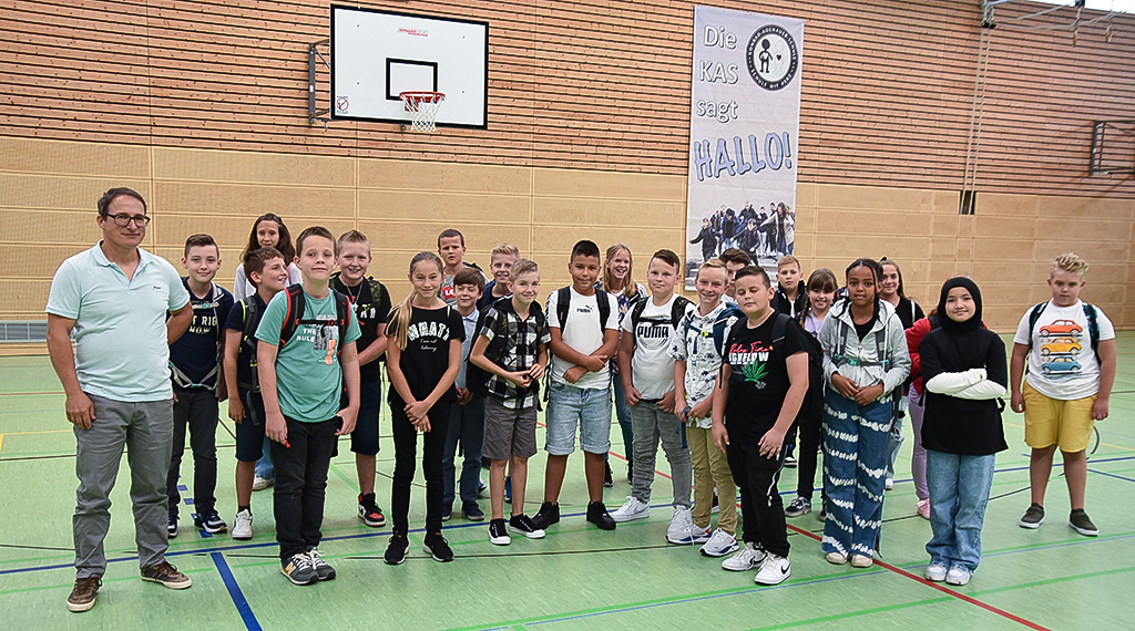 Zuvor hieß Schulleiterin Anke Schüler die Neulinge zusammen mit ihren Eltern herzlich willkommen in der Schulgemeinde, in der sie ab sofort eine „gewichtige Rolle“ einnehmen werden. Die Schulleiterin sprach von einem bedeutenden Abschnitt, der nun vor den Kindern und ihren Eltern liegen würde und dass sie an der KAS in guten Händen seien. Sie bescheinigte den „Neuen“, dass sie eine erfolgreiche Grundschulzeit hatten, da sie nun an einer Realschule weiter lernen können. Weiterhin gab sie schon einen kleinen Einblick in das bevorstehende Schulleben an der KAS neben all den Unterrichtsfächern.