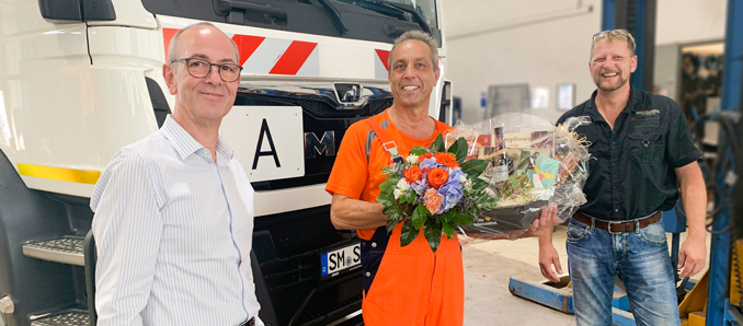 Andreas Henkens feierte zum 1. September 2020 sein 40-jähriges Jubiläum als Berufskraftfahrer bei der SSR Schmalkalden Stadtreinigung GmbH. Eine außergewöhnliche Leistung, die ihm wohl nur noch wenige Kollegen nachmachen können, sind sich Torsten Jahns, Geschäftsführer des Entsorgungsunternehmens, und sein Stellvertreter, Frank Jäger, einig. Langjährige Firmenzugehörigkeiten gehören mittlerweile eher der Vergangenheit an. Selten verbringen Arbeitnehmer noch ihr halbes Arbeitsleben oder mehr in ein und demselben Unternehmen.