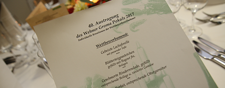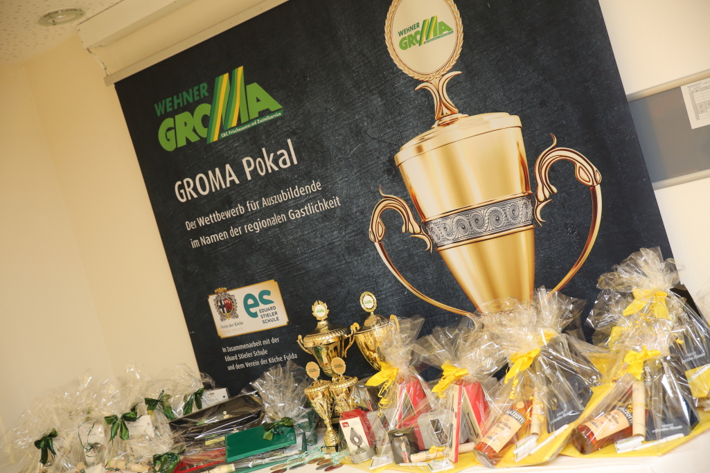 Fulda. Gestern Abend ist in der Eduard-Stieler-Schule in Fulda zum 40. Mal der „Wehner-Groma-Pokal“ an Köche, Hotel- und Restaurantfachleute, verliehen worden. Teilnahmeberechtigt waren auszubildende Köche des 2. und 3. Lehrjahres aus dem osthessischen, südthüringischen und nordfränkischen Raum. Die wettbewerblichen Bedingungen des sogenannten „Groma-Pokal-Menüs“ in diesem Jahr waren mit dem passenden Titel „Eine Zeitreise durch 40 Jahre Wehner Groma Pokal“ überschrieben und beinhalteten einen „Gruß aus der Küche“ (Amuse Bouché), eine „Kalte Vorspeise“, bei der in diesem Jahr das Thema „Gebeizte Lachsforelle nach Art der Teilnehmerin/des Teilnehmers dazu passende Soßen und Brot“ vorgegeben worden war, eine „Warme Vorspeise“, bei dieser mit einem „Blätterteigpastetchen gefüllt mit Ragout fin aus einem Suppenhuhn und passenden Beilagen“ gearbeitet wurde. Beim Hauptgang mussten die Teilnehmenden eine „Geschmorte, gefüllte Rinderroulade mit zweierlei Gemüse“ zubereiten. Bei der dazugehörenden Sättigungsbeilage ließ man den jungen Köchinnen und Köchen entgegen freie Wahl. Das Dessert war mit den Themenkomponenten „Pfannkuchen, Parfait und Obstgarnitur“ überschrieben. Korrespondierende Weine zum Menü waren einmal, ein „vollmundiger Grauburgunder mit einer eleganten Säure“ aus dem Jahr 2016 (Weingut Georg Naegele, Neustadt an der Weinstraße) und zum zweiten, ein „ausgewogener, feiner Bordeaux mit Aromen von roten Früchten“ aus dem Jahr 2015 (Château de Marsan, Lestiac-sur-Garonne).