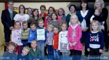 Die Leiterin der Sternenschnuppe sagte, dass die zur Verfügung gestellten Materialen tagtäglich eingesetzt würden. Es sei immer wieder eine Freude zu beobachten, wie sich der Forscherdrang der Kinder entwickle. Bürgermeister Kram lobte das langjährige Engagement des Kindergartens im Umweltbereich und verwies auf die Solaranlage mit der kindgerechten Möglichkeit, Sonnenenergie zu visualisieren. VHS-Studienleiter Will, der neben Anerkennungsurkunde und Plakette zwei Bücher und kleinere Geschenke wie Forschertassen und Reagenzgläser mitgebracht hatte, nannte die Zertifizierung eine Teamleistung, die zusätzlich zur normalen Arbeit erbracht werde. +++ fuldainfo