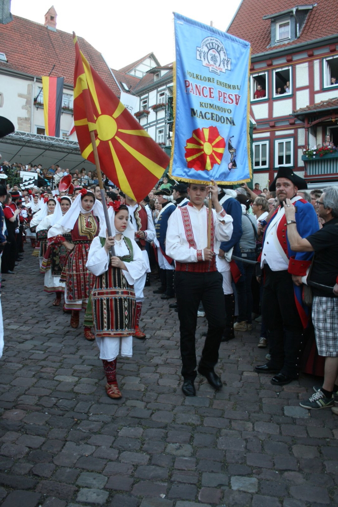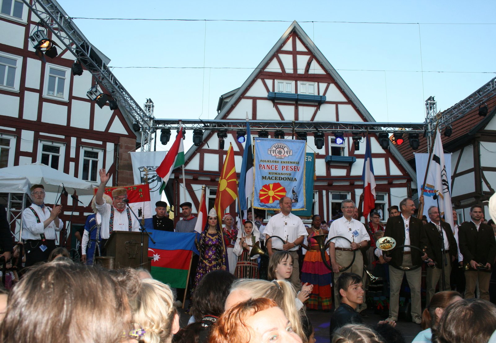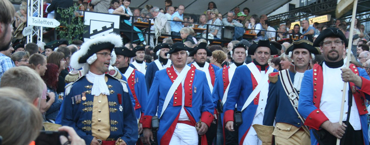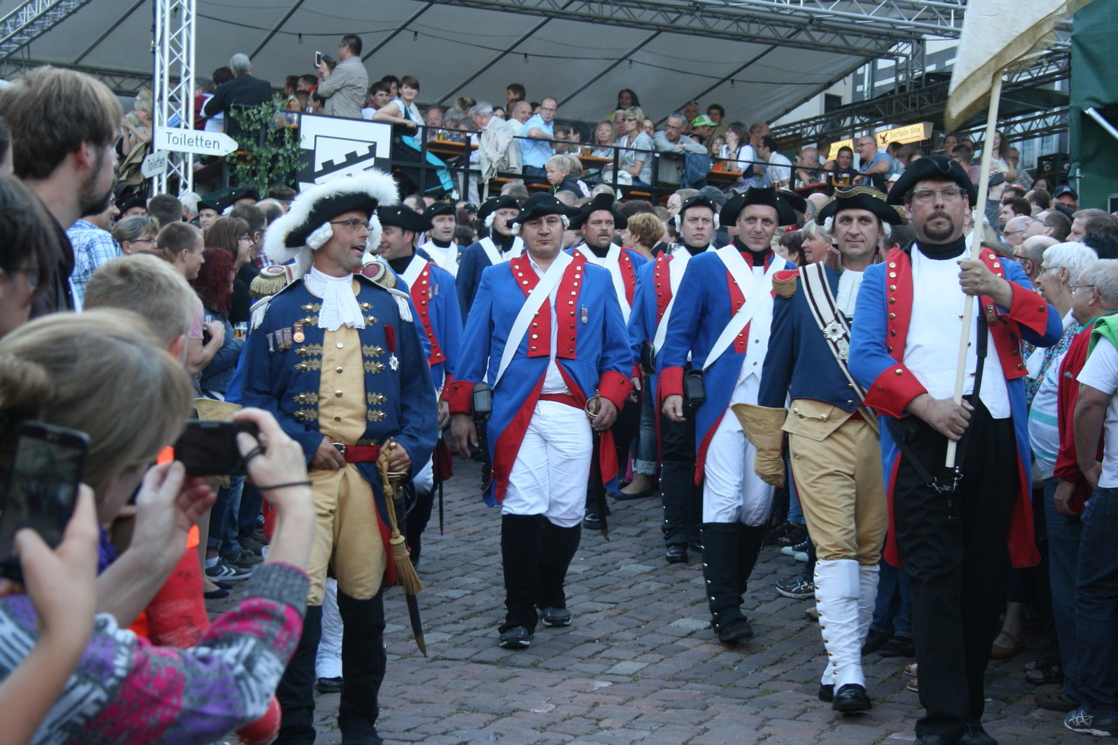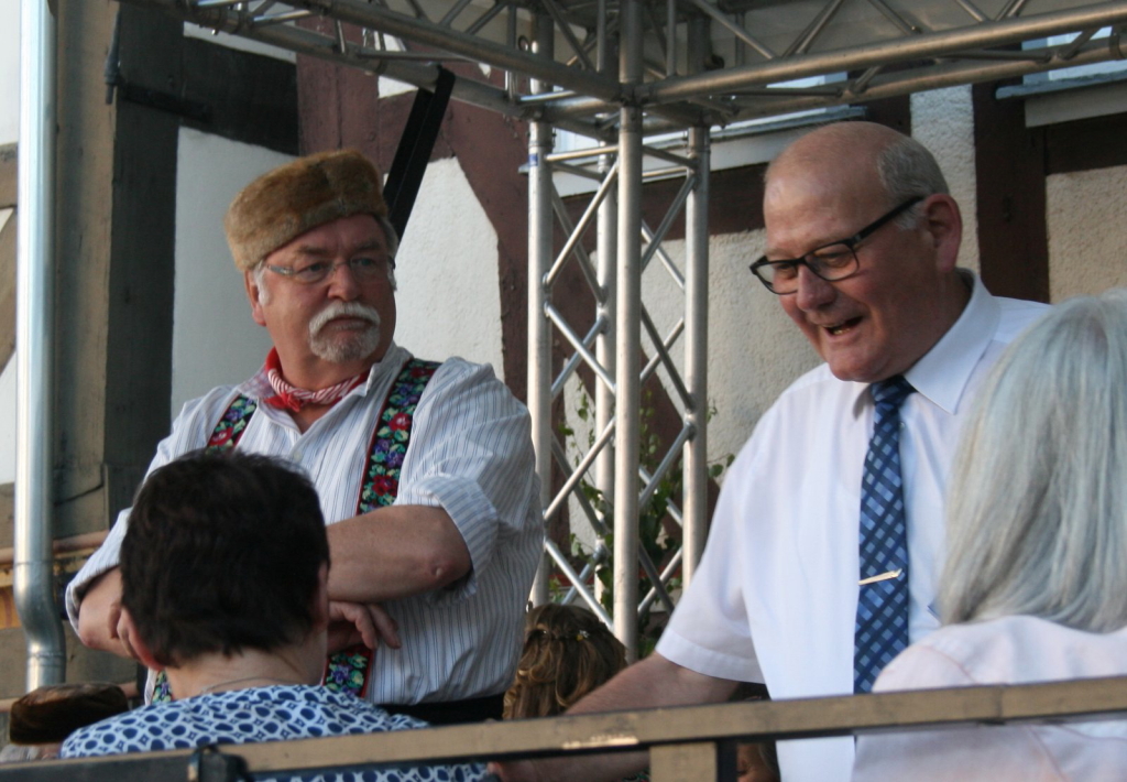 Damit war auch die Zeit gekommen, den Vorführungen die Aufmerksamkeit zu widmen, oder, was zahlreich geschah, gemütlich durch das Städtchen zu gehen, die zahlreichen Stände zu besuchen, an verschiedenen Stellen ein Bier zu trinken oder sich an den schmackhaften Speisen zu stärken; lange nichtgesehene Freunde, die teils von weit her wieder einmal heim gekommen waren, zu umarmen und sich angeregt zu unterhalten. Um 19,15 konnte wohl noch kaum jemand ahnen, dass sich nachfolgend so viele Menschen einfinden würden, wie das in der Vergangenheit wohl nie zahlreicher geschehen war.
