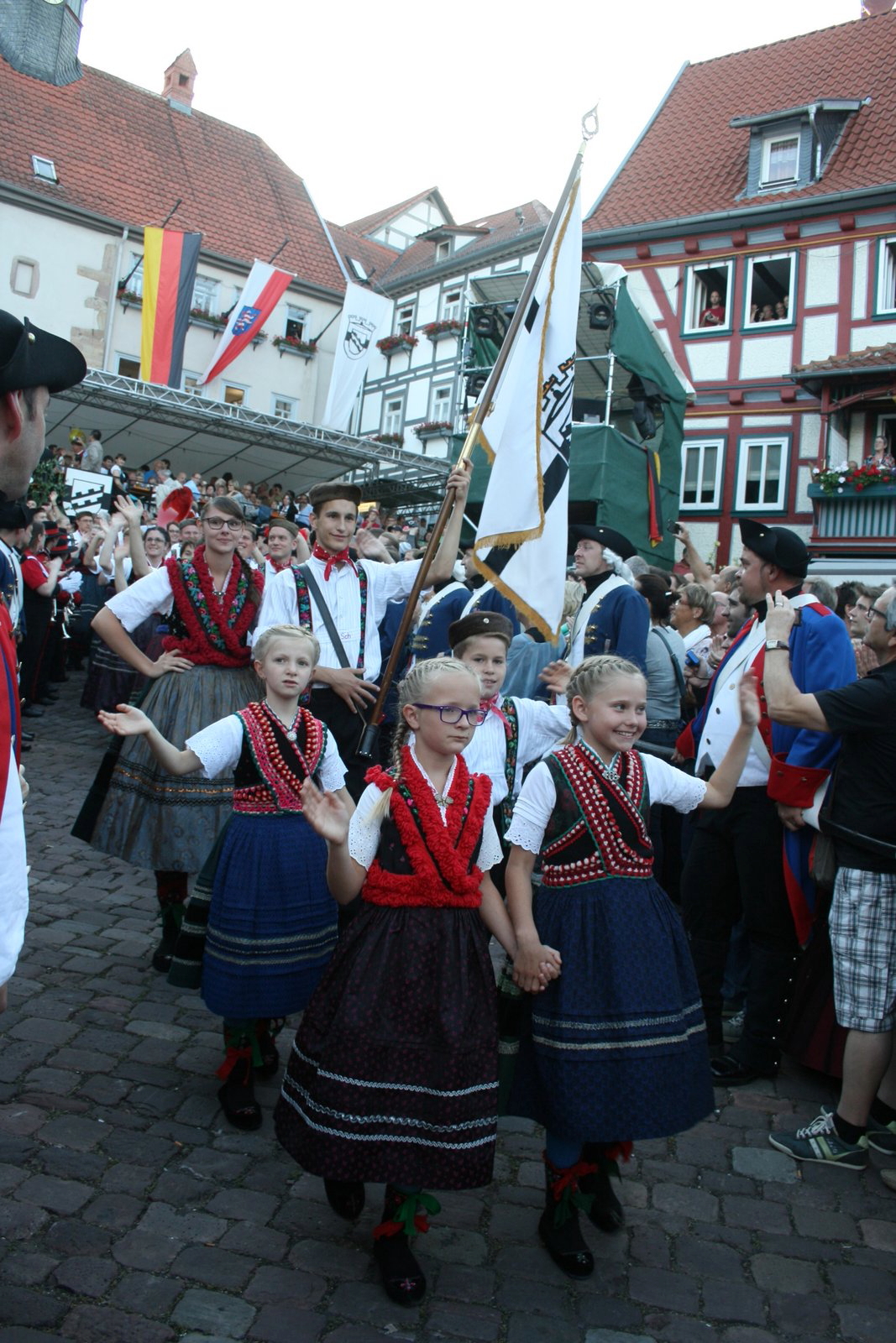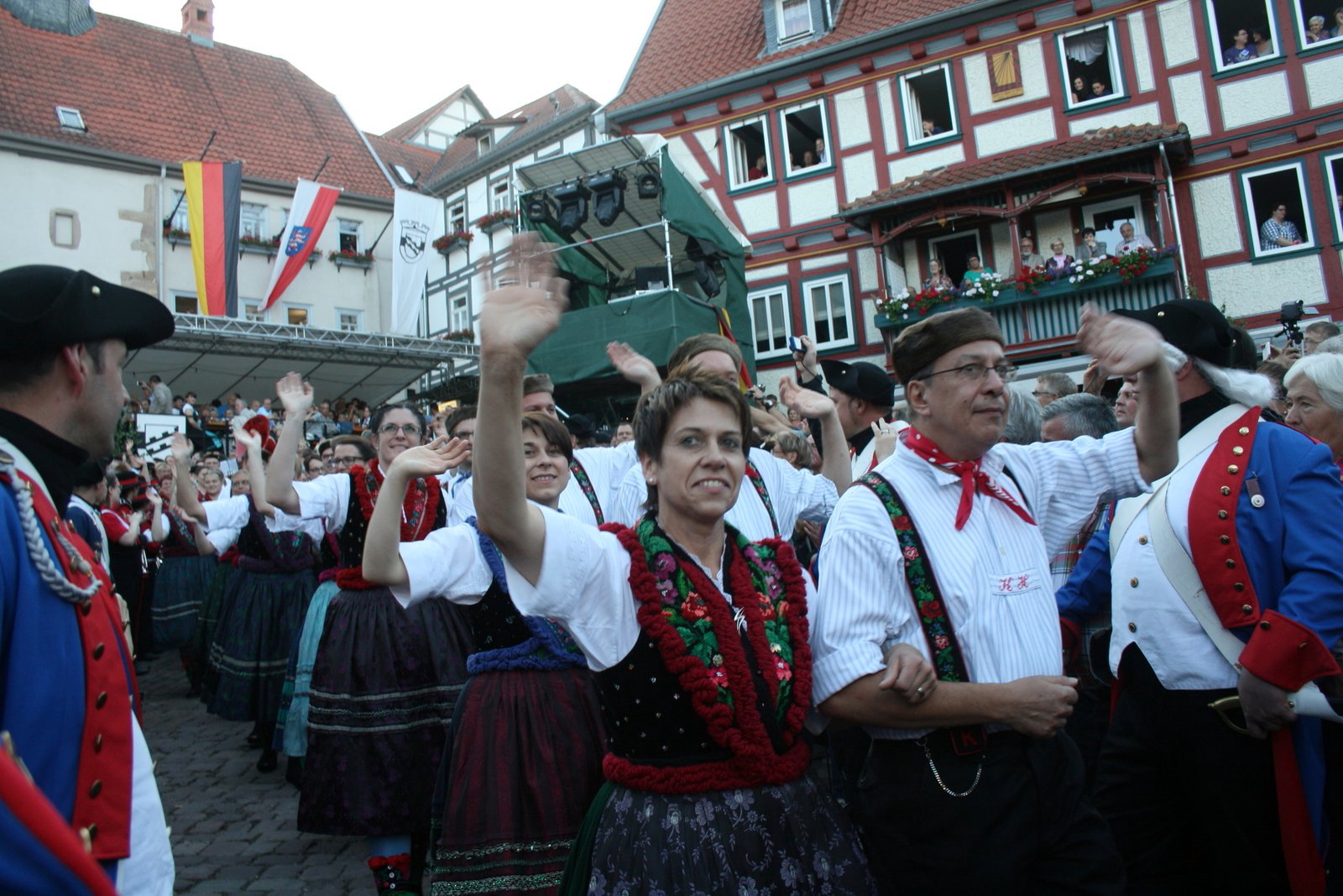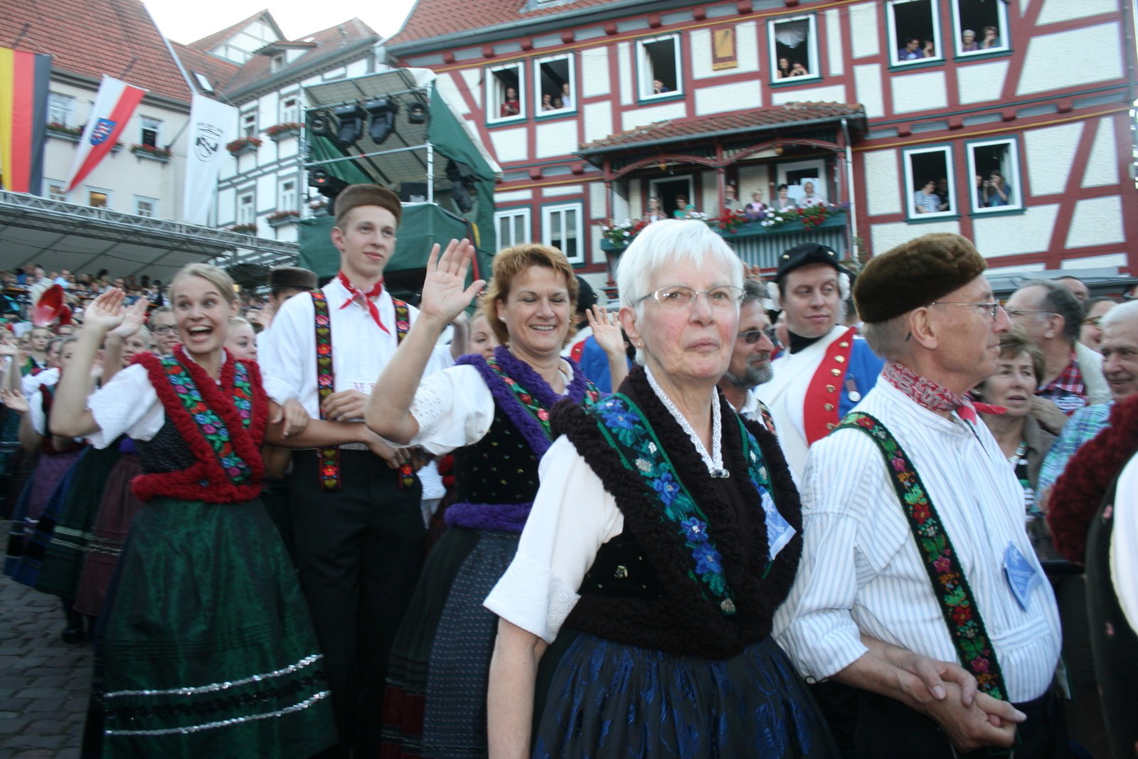 Schlitz. Es ist Freitagabend 19,15 Uhr, herrlichstes Wetter, und langsam füllt sich der historische Marktplatz der Burgenstadt Schlitz. Die vorgesehene Eröffnungszeit um 19,30 Uhr rückt immer näher und der Mittelpunkt der Altstadt lässt kaum noch Platz für weitere Gäste. Der versierte Moderator Dieter Richter stimmt die Anwesenden kontinuierlich auf den Einmarsch der bunt gekleideten Gruppen ein, denn der vorgesehene Beginn der Eröffnungsfeier verschiebt sich von Minute zu Minute, was aber, wie beim Heimat- und Trachtenfest nicht anders zu erwarten, in keiner Weise für Unruhe unter der inzwischen großen Zahl von Gästen führt.