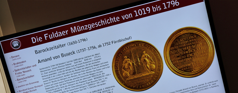 Fulda. Am Dienstag, den 28. April, wurde anlässlich des 1000-jährigen Bestehens der Abtei Fulda, das neu gestaltete Münzkabinett des Vonderaumuseums, im Beisein von Museumsdirektor Dr. Gregor Stasch, der Stiftervereinigung und der Jubiläumsstiftung der Sparkasse Fulda, mit Besonderheit der neu erworbenen 50 Dukaten Medaille, durch Oberbürgermeister Gerhard Möller (CDU) eingeweiht.
