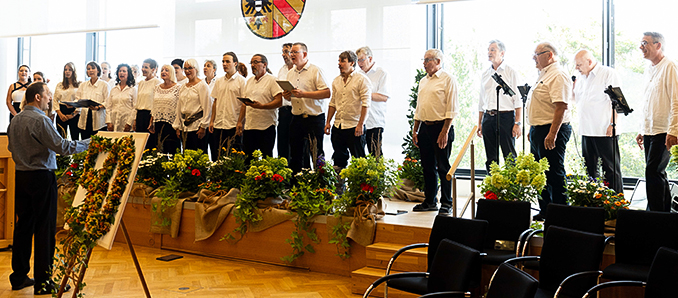 Landrat Thorsten Stolz, Minister Roman Poseck und Kreistagsvorsitzender Carsten Ullrich hoben die Bedeutung des Grundgesetzes und der Demokratie, die Werte des Föderalismus sowie die Notwendigkeit von politischem Engagement vor Ort hervor. „Lassen Sie uns noch stärker für unsere Demokratie und unsere Werte streiten. Und lassen Sie uns weiterhin für den Main-Kinzig-Kreis, den schönsten Landkreis der Bundesrepublik Deutschlands, zusammen arbeiten“, brachte Thorsten Stolz die Stoßrichtung auf den Punkt.