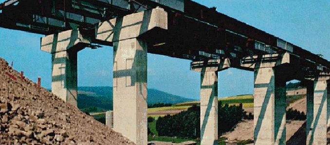 Thalaubach-Talbrücke der A 7 während des Baus ca. 1967. Foto: Hessen Mobil