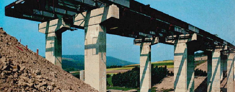 Thalaubach-Talbrücke der A 7 während des Baus ca. 1967. Foto: Hessen Mobil
