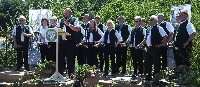 Landrat Bernd Woide lobte am Sonntag das mittlerweile über 61 Jahre andauernde Tun des Bläsercorps der Jäger- und Gebrauchshundevereinigung Rhön-Vogelsberg. Am Waldrand von Oberrode hatten sich die Musiker sowie über 150 Gäste zu einem Jubiläumsfest getroffen. „Ein herzliches Dankeschön dafür, dass Eure schöne Musik für Akzeptanz des Jagdwesens sorgt. Sie gehört zu unserer Region, ist fest verbunden mit Rhön, Vogelsberg und dem Landkreis Fulda. Danke dafür, dass Ihr diese Tradition pflegt“, führte Woide aus.