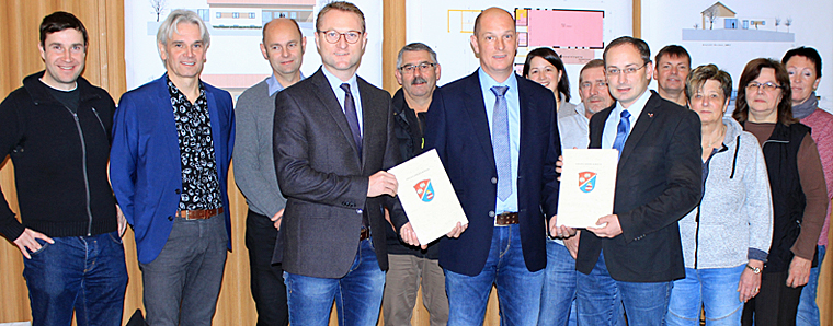 Dr. Jens Mischak und Matthias Sebald wiesen auf die segensreichen Wirkungen der Dorferneuerungspolitik – auch im privaten Bereich – hin. Privatförderung sei eine weitere wichtige Säule. Antragstellungen für private Vorhaben sind noch bis 31.03.2020 möglich.