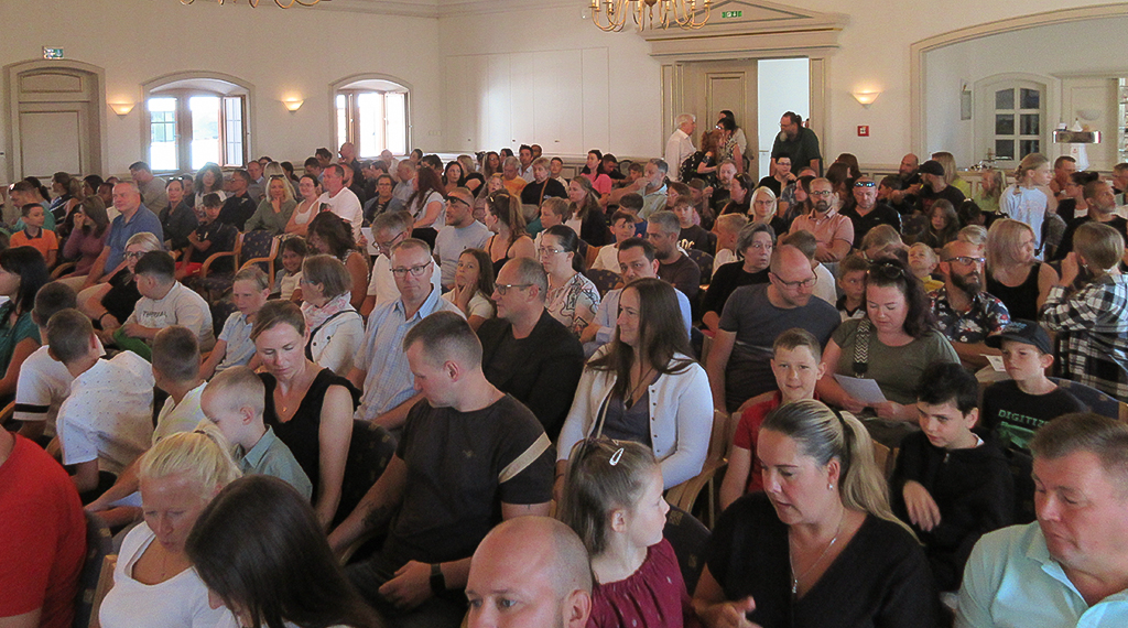 Schulleiterin Bianka Roth begrüßte die Schülerinnen und Schüler der neuen 5. Klassen anschließend sehr herzlich im wunderschönen Ambiente des Kultursaals des Eichenzeller Schlösschens. In ihrer Ansprache verglich sie den Weg der Kinder an der neuen Schule mit einer sehr spannenden Reise über viele Brücken. Sie stünden nicht nur für die vielen neuen Fächer, sondern beispielsweise auch für neue Freundschaften, Teamarbeit, das Übernehmen von Verantwortung und das sich gegenseitige Helfen.