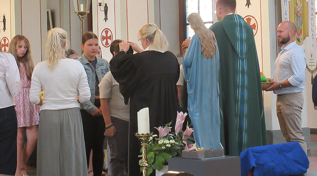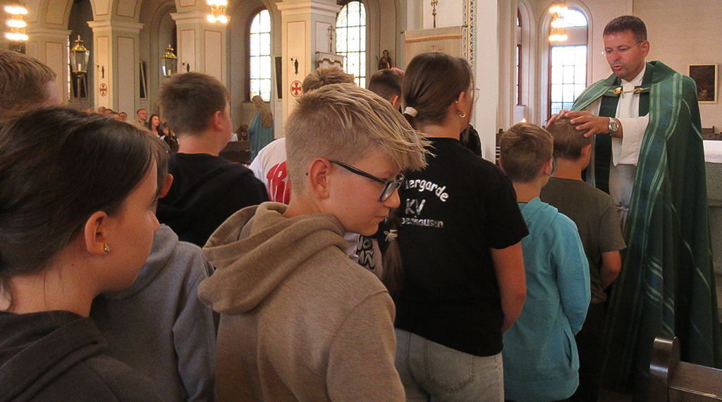 Große Aufregung und freudige Erwartung herrschten zu Beginn des neuen Schuljahres bei den 70 neuen Fünftklässlerinnen und Fünftklässlern der Von-Galen-Schule. Sie wurden im Kultursaal des Eichenzeller Schlösschens feierlich in die Schulgemeinde aufgenommen. Der Tag begann mit einem ökumenischen Gottesdienst in der St. Peter und Paul Kirche in Eichenzell unter der Leitung von Pfarrerin Ulrike Röder, Pfarrer Guido Pasenow und Lehrerin Bettina Faber-Ruffing, der ganz im Zeichen von Farben und ihrer Bedeutung stand.