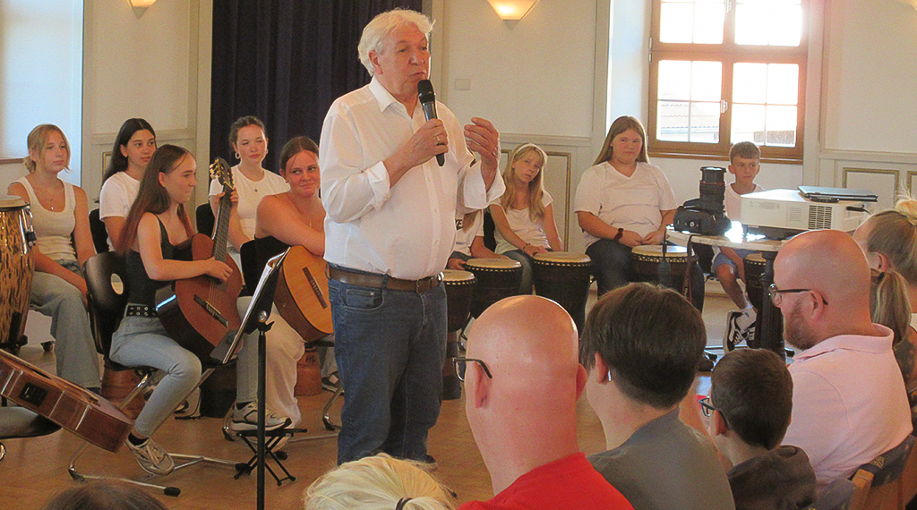 Manche Brücken, über die die neuen Fünftklässlerinnen und Fünftklässler gehen müssten, seien kurz und stabil, andere lang, hoch und groß. Manche seien klein, alt und wackelig, andere wiederum steil oder flach. Aber alle Brücken würden sie an ihr Ziel bringen. Manchmal sei es sehr leicht eine Brücke zu überqueren, so als würde man ein neues Thema gleich verstehen oder schnell neue Freundschaften schließen. Manchmal aber brauche es auch Mut und man schaue lieber nicht hinunter, weil es so tief nach unten gehe. Dies seien die schwierigen Themen, bei denen man mehr Geduld, mehr Ausdauer und manchmal auch Hilfe brauche. Auch wenn es einmal Konflikte und Streitigkeiten gebe und dunkle Gewitterwolken sehr tief über der Brücke stünden, sei es nicht so einfach, sie zu überqueren.
