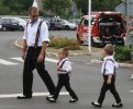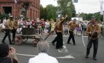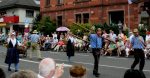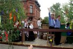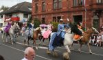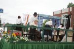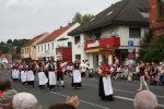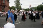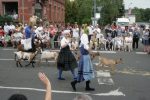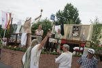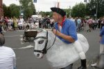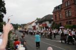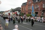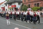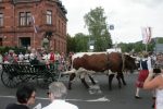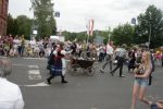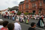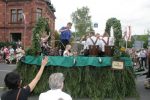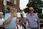 Hans-Jürgen Beck,(rechts) ein Mitglied des Trachtenvereins, verstand es sehr gut, den Festzug fachlich und sachlich zu moderieren.