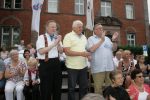 Funktionierende Partner- und Freundschaft. Bürgermeister Hans-Jürgen Schäfer, der Bürgermeister der ungarischen Partnerschaftsgemeinde Bogislov, und Erter und Ehrenstadtrat Norbert Schäfer. Der Bürgermeister aus Ungarn war zum 10. Mal Gast der Trachtenfeste und Norbert Schäfer feierte anschließend seinen 65. Geburtstag.
