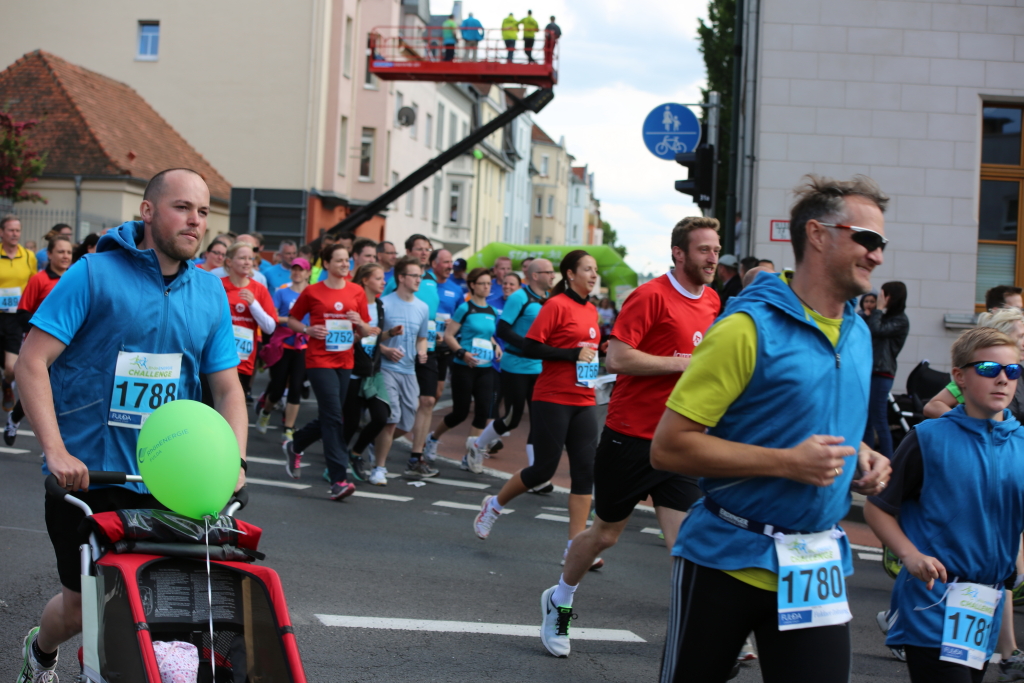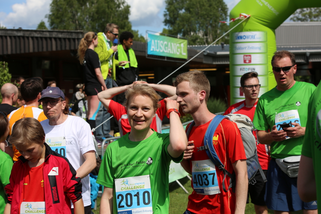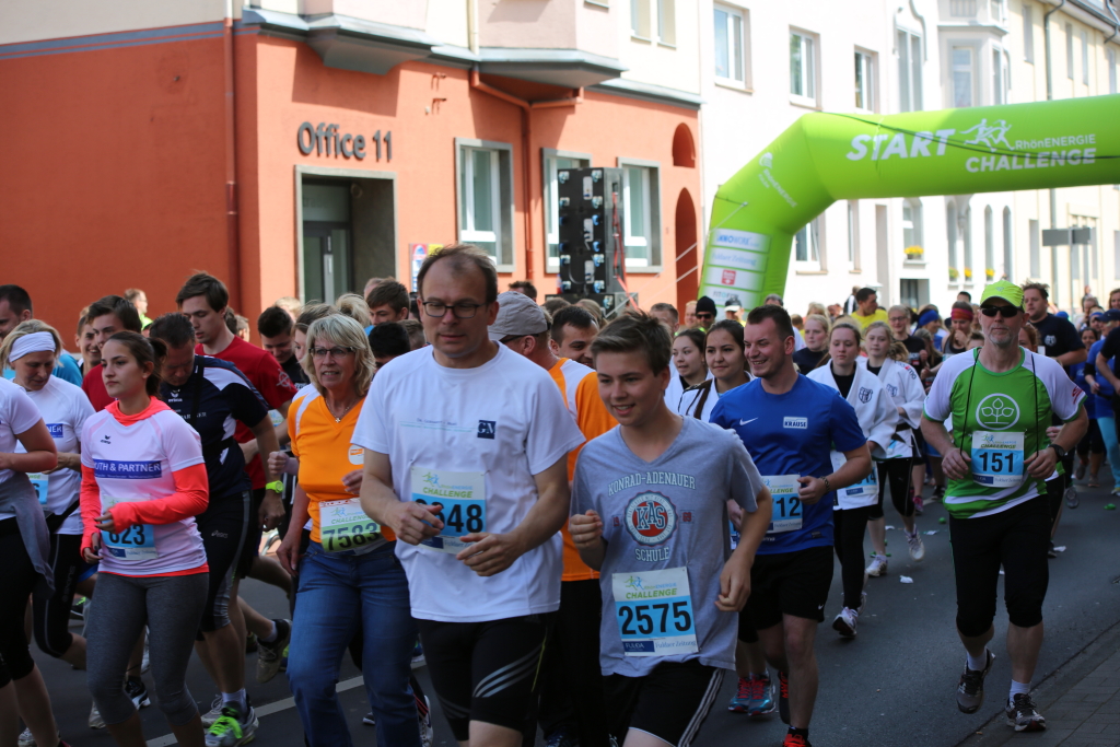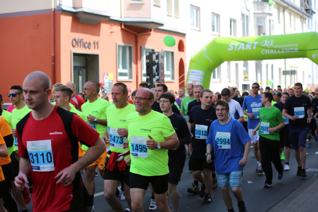 Fulda. Heute fand zum neunten Male der Challenge-Lauf statt. Beim beliebten regionalen Firmenlauf waren bei guten Wetterbedingungen waren fast 7000 Läufer am Start. Der RhönEnergie Challenge-Lauf umfasste dieses Jahr 5, 7 Kilometer quer durch die Innenstadt und endete im Rosenbad. Mandana Hoffmann war bei dem diesjährigen Challenge-Lauf, mit 25:03 Minuten, die schnellste Läuferin, Ilyas Iman, mit einer Zeit von 19:18 Minuten, der schnellste Läufer der diesjährigen Challenge. Das Warm-Up führte erstmailig der neue Partner der RhönEnergie Challenge, das Fitnessstudio Fit & Fun, durch. +++ fuldainfo/ja