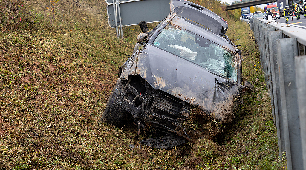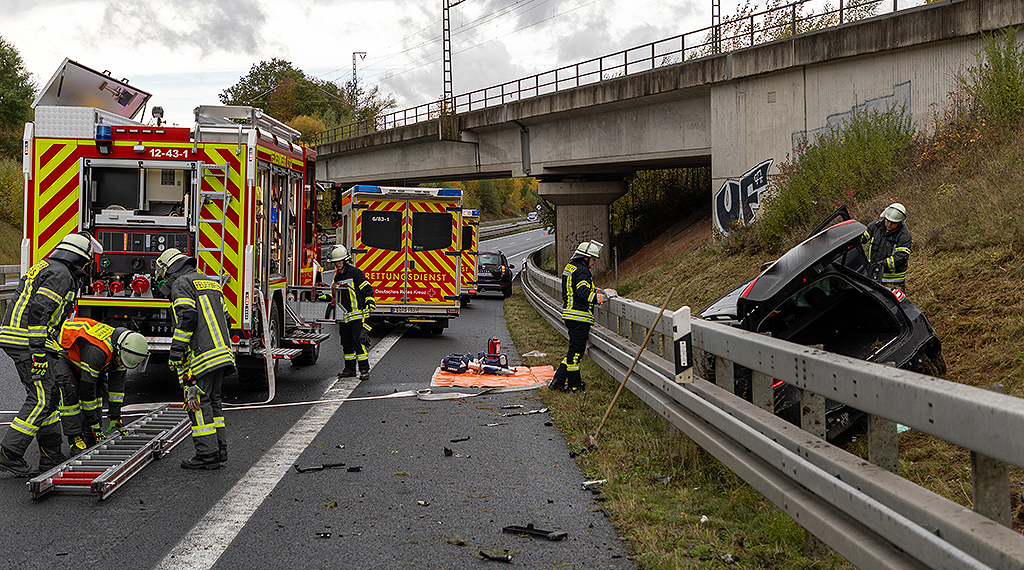 Am Donnerstagmittag hat sich auf der A66 zwischen den Anschlussstellen Flieden und Schlüchtern-Nord ein schwerer Verkehrsunfall ereignet. Kurz vor der Abfahrt Schlüchtern-Nord, unmittelbar vor einer Autobahnbrücke, kam ein 60-jähriger Fahrer mit seinem Mercedes-SUV aus bislang ungeklärter Ursache in einer Kurve nach rechts von der Fahrbahn ab. Das Fahrzeug durchbrach die Leitplanke und flog über diese hinweg. Die Einsatzkräfte rückten mit einem Großaufgebot an die Unfallstelle aus. Die A66 ist in Fahrtrichtung Süden derzeit vollständig gesperrt. Sowohl der Fahrer als auch seine 15-jährige Tochter, die als Beifahrerin im Wagen saß, wurden bei dem Unfall verletzt. Der entstandene Sachschaden beläuft sich auf rund 75.000 Euro. +++
