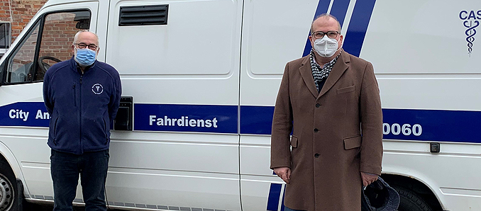 Ab sofort können Alsfelder Unternehmen kostenlose Corona-Schnelltests für ihre Beschäftigten durch die City-Ambulanz Alsfeld durchführen lassen. Dieses neue Angebot stellte City-Ambulanz Geschäftsführer Hans-Joachim Röhrig heute Bürgermeister Stephan Paule im Rahmen eines Vor-Ort-Termins vor. „Unter der Telefonnummer 06631/800060 können die Unternehmen Termine mit uns vereinbaren.