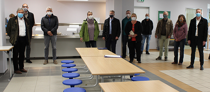 850.000 Euro hat der Main-Kinzig-Kreis innerhalb eines Jahres in die Friedrich-August-Genth-Schule (FAG) in Wächtersbach investiert, um den Altbau zu sanieren und den Brandschutz auf den aktuellen Stand der Technik zu bringen. Zudem wurde parallel der Speisesaal im Hauptgebäude um 90 Quadratmeter erweitert. Kreisbeigeordneter und Schuldezernent Winfried Ottmann verschaffte sich anlässlich der Fertigstellung der Bauarbeiten an der Gesamtschule einen Überblick über die vorgenommenen Arbeiten und ließ sich von Schulleiter Dirk Eckrich während eines Rundgangs die Neuerungen zeigen. An dem Rundgang nahmen auch Vertreter des Amtes für Schulwesen, Bau- und Liegenschaftsverwaltung beim Main-Kinzig-Kreis sowie Kreistagsmitglieder und Mitglieder des Kreisausschusses teil.