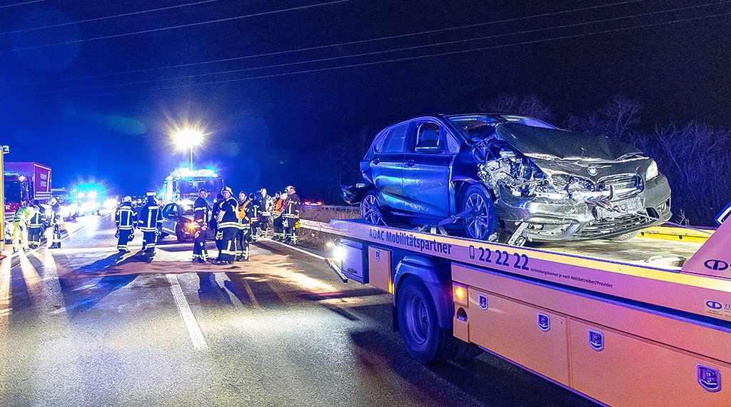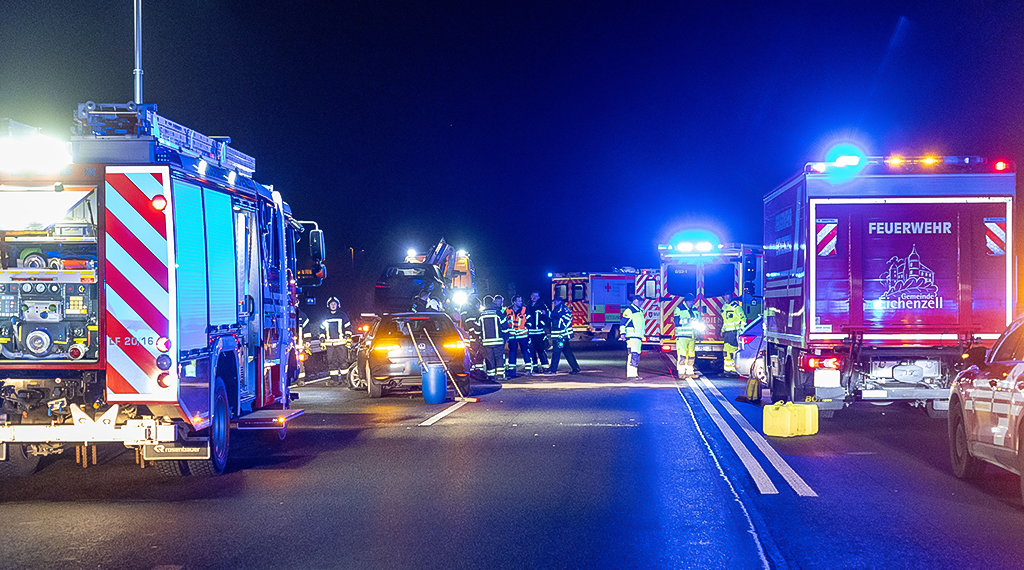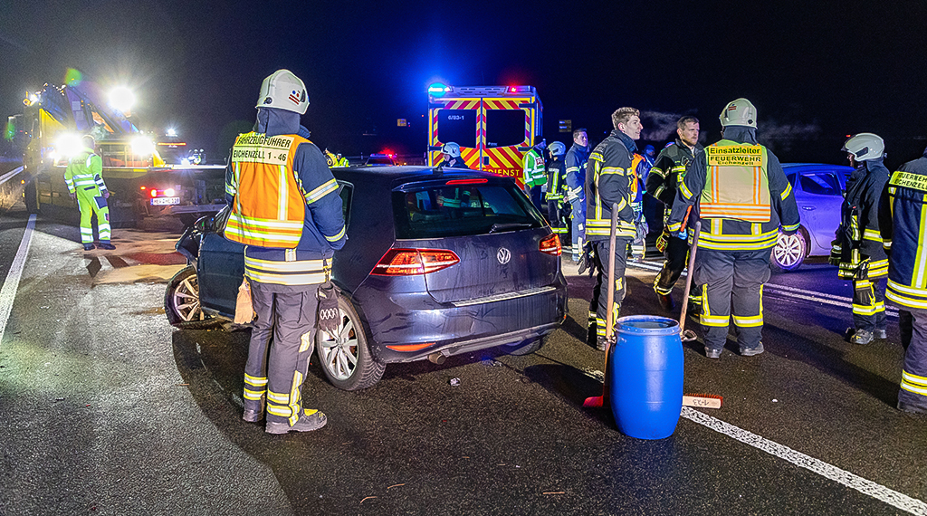 In der Folge kam es zu einem Kettenauffahrunfall, bei dem ein vierter Pkw auf den dritten und ein fünfter Pkw auf den vierten auffuhr. Durch den Unfall wurden insgesamt acht Personen verletzt. Sie wurden an der Unfallstelle vom Rettungsdienst versorgt und anschließend in umliegende Krankenhäuser gebracht.