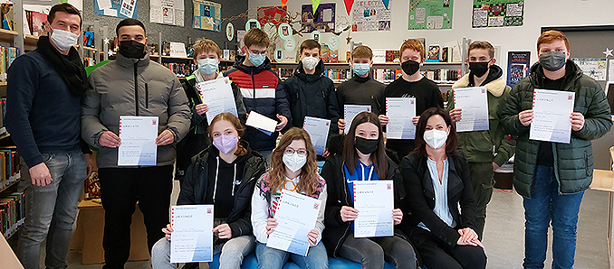 Schulleiterin Kerstin Glende gratulierte den Gewinnern und freute sich sehr über die guten Leistungen der Schülerinnen und Schüler. Gemeinsam mit Mathematiklehrer Alex Rexius, dem Koordinator des Mathematikwettbewerbs, überreichte die Schulleiterin an die Schüler die Urkunden: „Ich drücke Euch fest die Daumen für den anstehenden Kreisausscheid im März“. Dieser soll in diesem Jahr wieder gemeinsam mit den Schulsiegern der anderen Schulen stattfinden. An der Gesamtschule Obersberg werden sich dann die Realschüler des gesamten Landkreises Hersfeld-Rotenburg den Aufgaben stellen, während sich die Gymnasiasten an der Konrad-Duden-Schule und die Hauptschüler an der Gesamtschule Geistal treffen. +++ pm