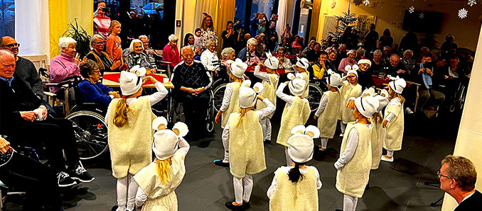 Im festlich geschmückten DRK Seniorenzentrum St. Lioba fand letzte Woche eine stimmungsvolle Adventsfeier statt. Dabei feierten die Bewohnerinnen, Bewohner und ihre Angehörigen gemeinsam die Ankunft des heiligen Nikolaus. Frau Anne Scholze, Abteilungsleiterin des Sozialdienstes, eröffnete im Namen der Einrichtungsleiterin Frau Neele Dreis und des Hauses die Feier. Sie wünschte allen einen schönen Nachmittag. Ihre Worte zauberten ein Lächeln auf die Gesichter der Anwesenden und zeigten, wie wichtig der Zusammenhalt in der Gemeinschaft ist.